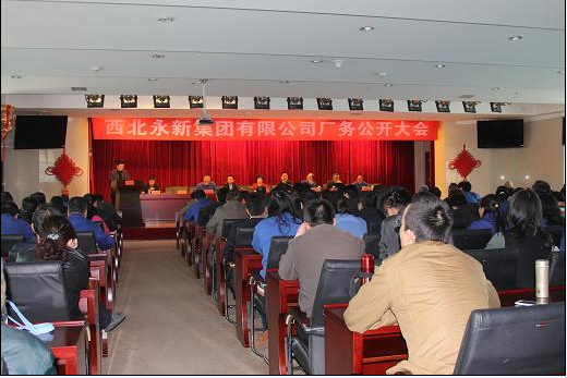 (永新集团讯 通讯员杨号)2014年4月11日下午,永新集团在公司九楼多功能厅召开了厂务公开大会。会议由集团党委书记付淑丽主持。集团领导班子成员,中层以上管理人员各单位工段长、班组长、职工代表、党员代表共180余人参加了大会。